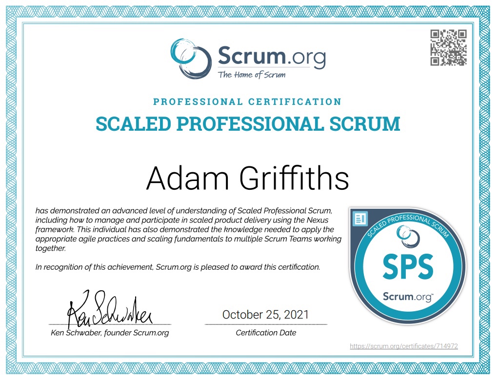 I recently took scrum.org’s Scaled Professional Scrum exam. Scaling scrum to work across multiple teams is a difficult and controversial topic with several different frameworks and organisations vying for dominance. Less, SAFe, and Nexus all offer courses and solutions to this difficult challenge. Personally I opted to take the Nexus exam because I’d already studied it while revising for my PSM-II (and I’d liked what I’d seen) and because I hold scrum.org’s approach to learning I’m very high regard.