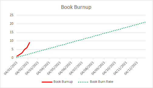 If you’ve read my post on Personal KPIs you’ll have seen that I track my goals to provide visual encouragement, but also an early warning if I’m running behind. Here’s my reading graph: